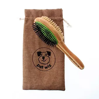 Perie Pet Wiz din bambus cu doua fete – ingrijire blana caini si pisici, eficienta si naturala